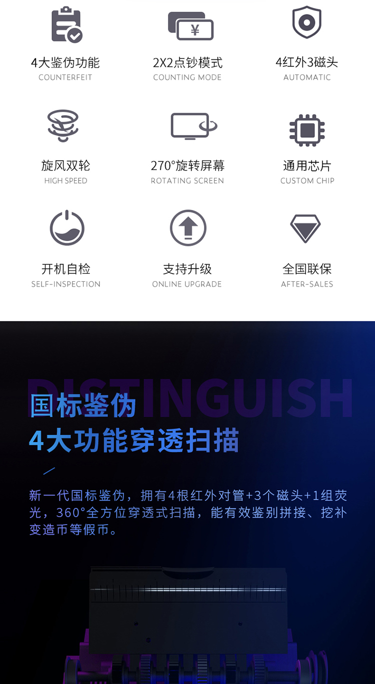 得力(deli)2019年新版人民币点钞机验钞机升级款 银行专用 双屏语音商用家用国标C级点钞机数钱机